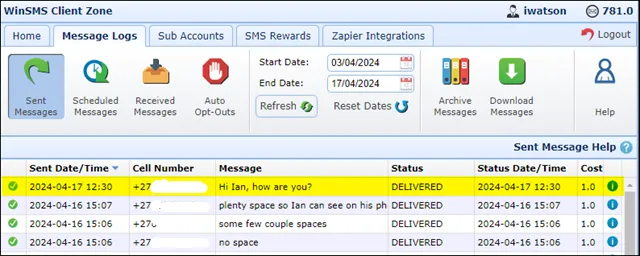 You now can start sending SMS messages and receiving SMS replies as you normally would, and your messages will be delivered via the WinSMS gateway.